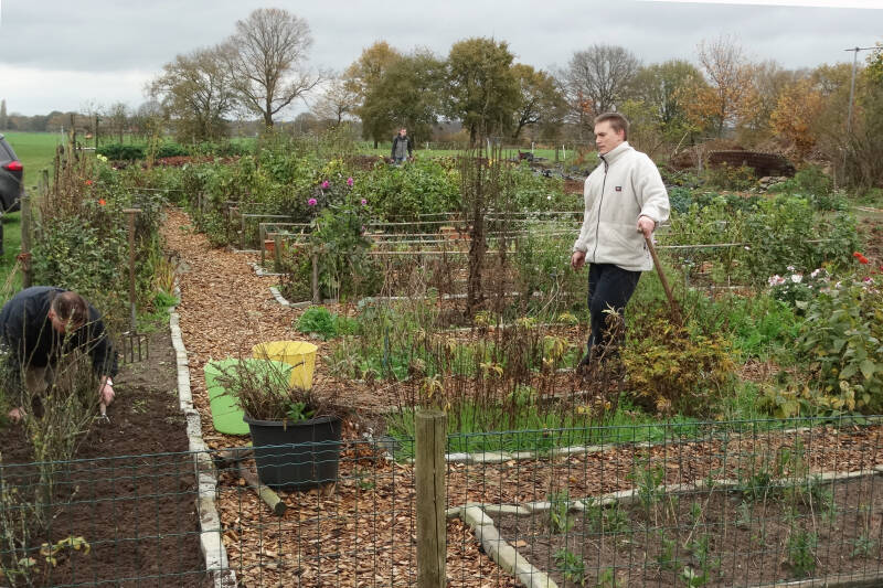 Niet alleen bij het schoonhouden van de tuin helpen de deelnemers, maar ook bij het poten en oogsten van de groenten helpen ze mee.